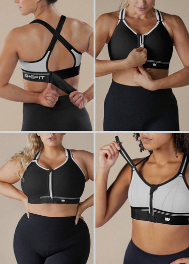 “Best fitness bra EVER!! I usually have to wear 2 bras and a Cami then a T-shirt over to be able to workout. Now I can go with a Shefit bra alone or tank and Cami. The clip-on halters are fabulous too!!!!!”