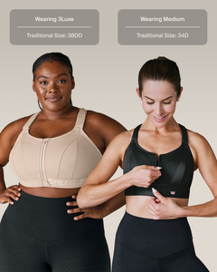 SHEFIT® sports bras are designed with adjustable fit and support. To determine the best size bra for you, grab a tape measure and then match your measurements to the size below.
